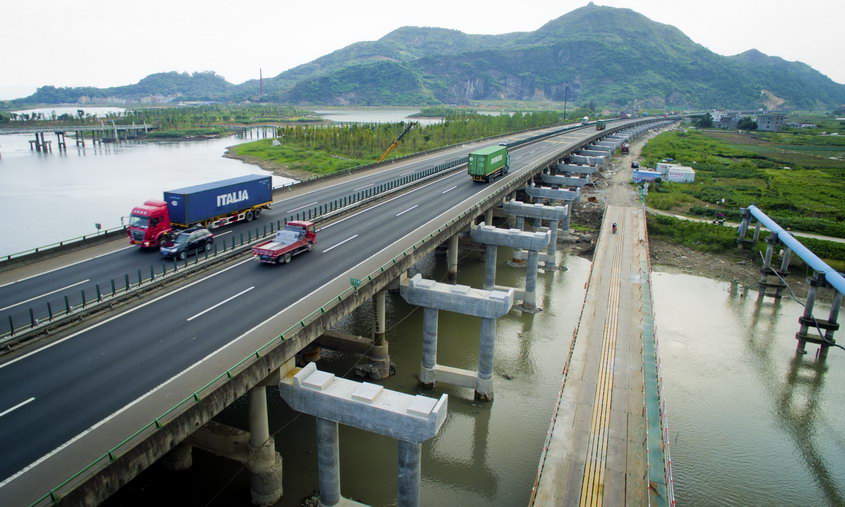 ●2015年5月,工程全线首片梁板浇筑完成(第2标段乐清湾高架桥右幅382跨-2#梁板)