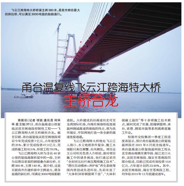 飞云江跨海特大桥昨合龙
