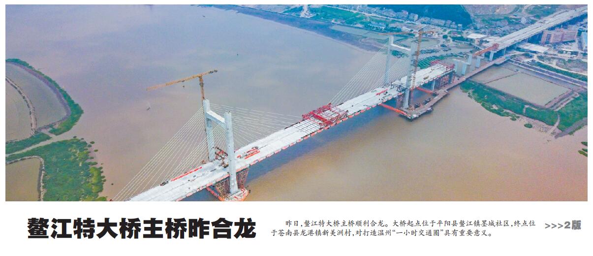 鳌江特大桥主桥昨合龙