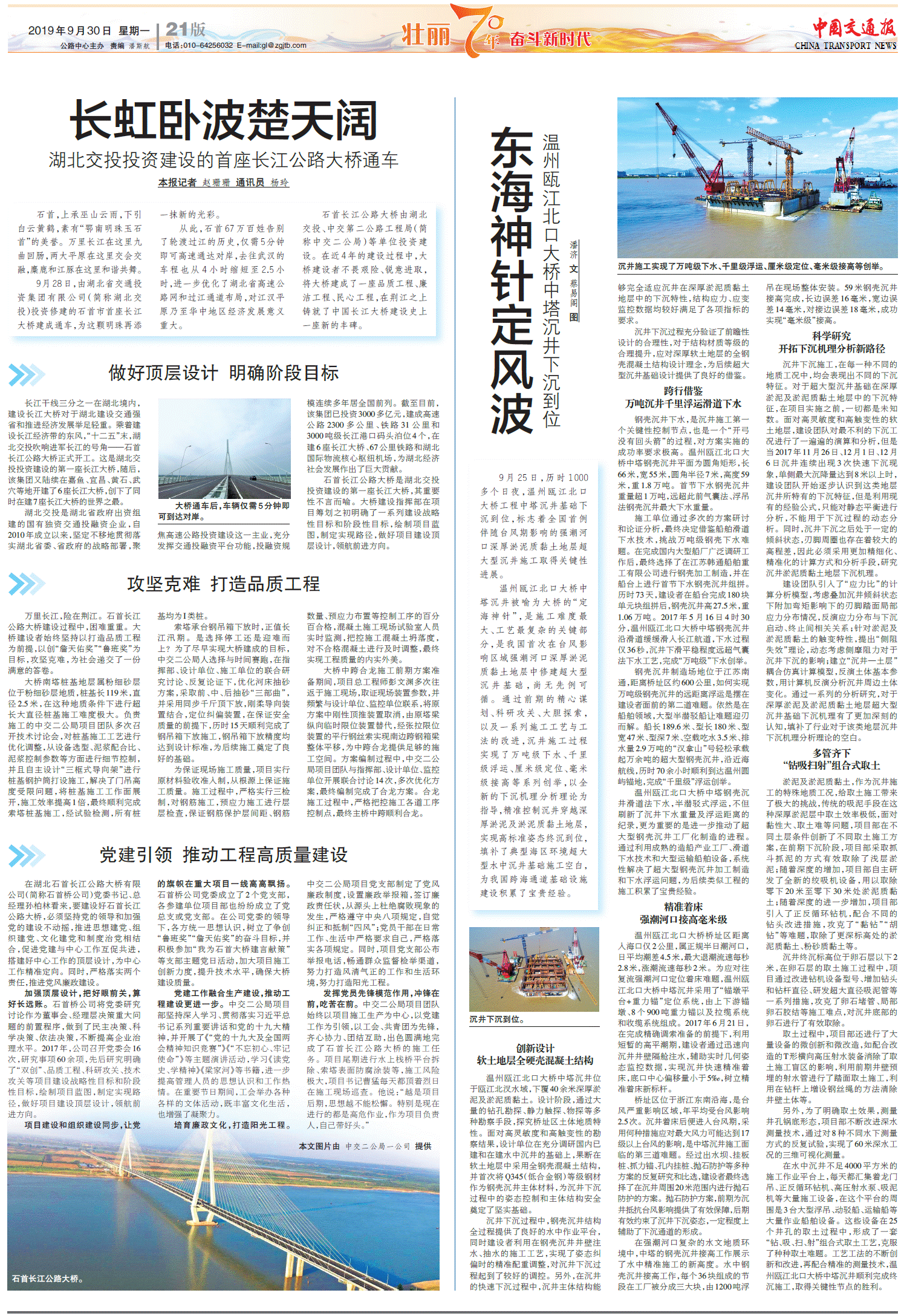 东海神针定风波 温州瓯江北口大桥中塔沉井下沉到位
