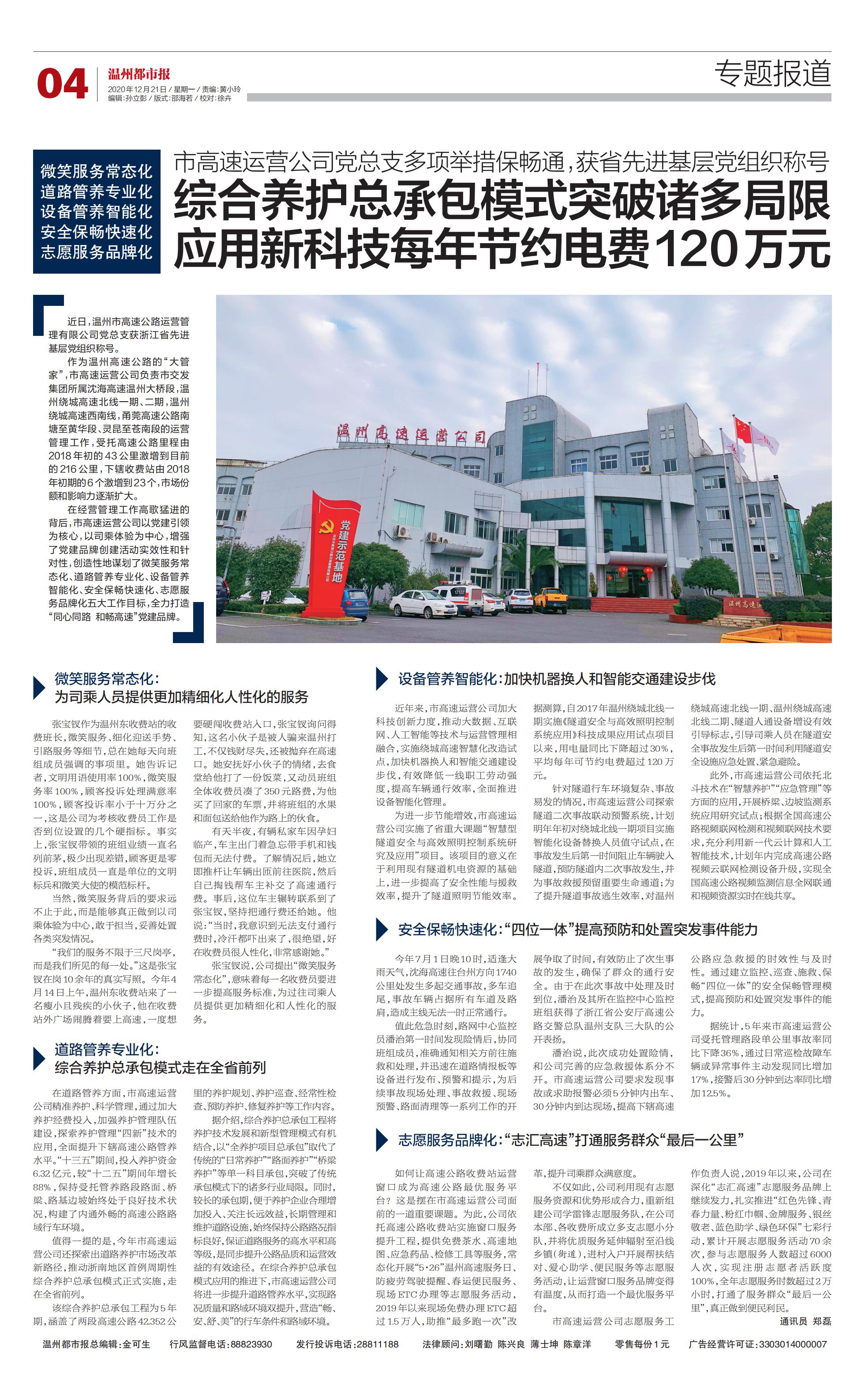 市高速运营公司党总支多项举措保畅通,获省先进基层党组织称号