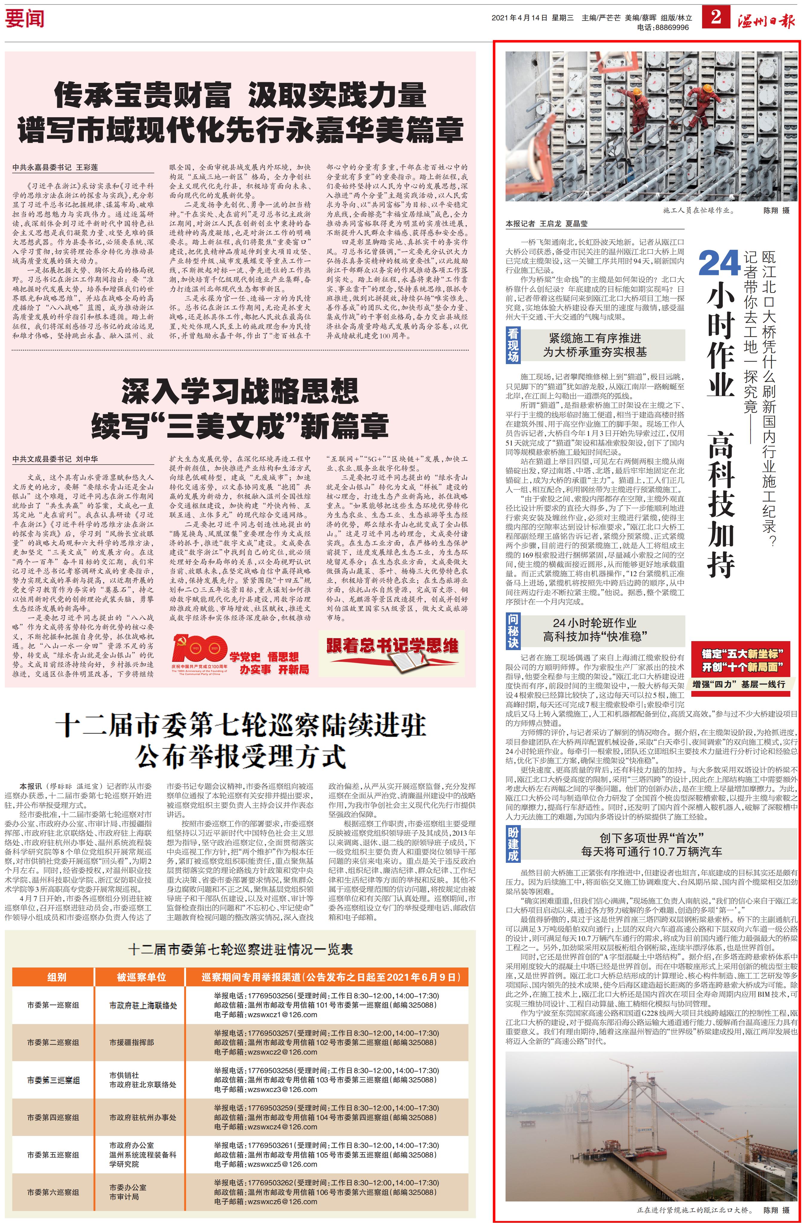 破纪录!94天建成瓯江北口大桥“生命线”