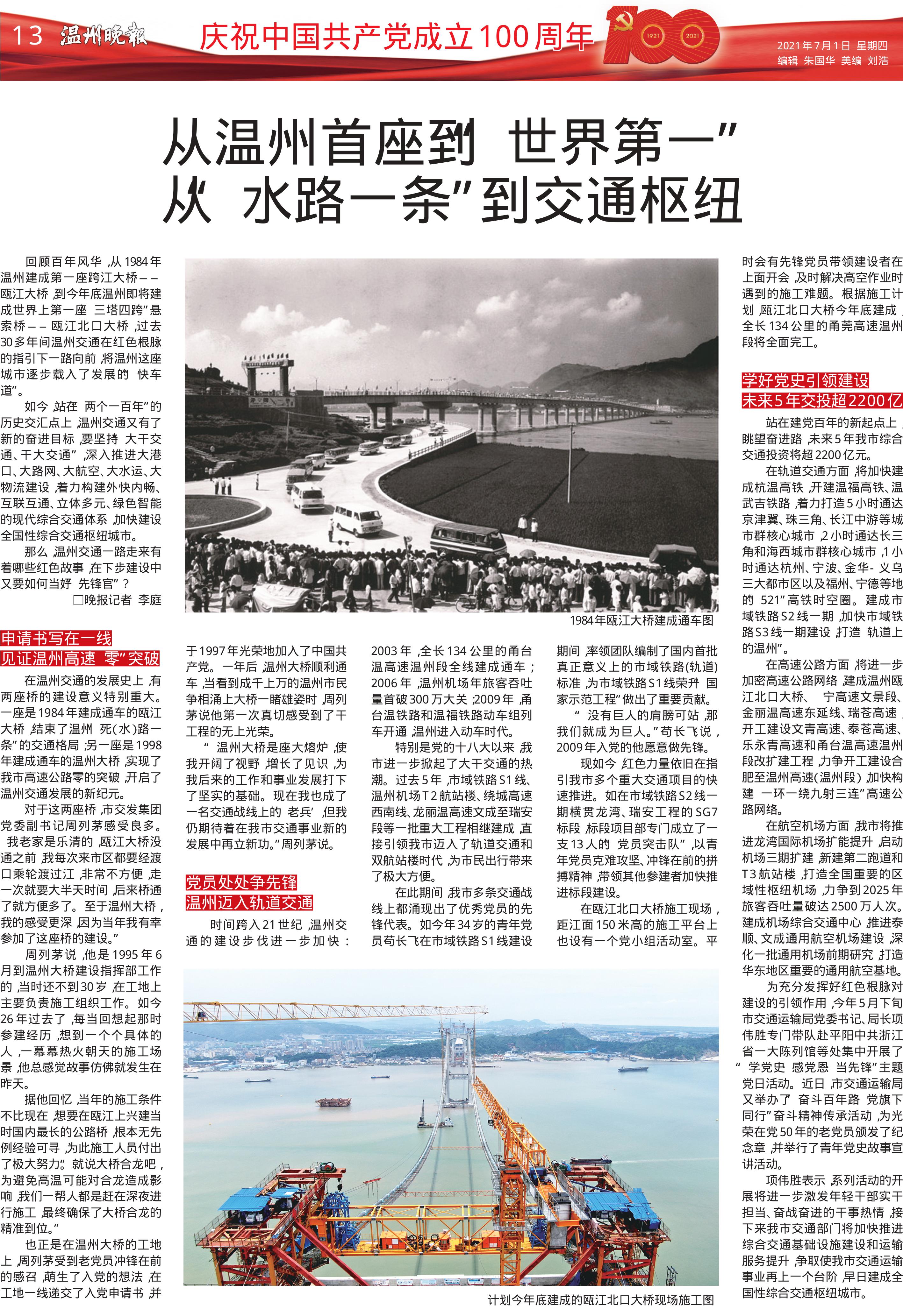 从温州首座到“世界第一” 从“水路一条”到交通枢纽