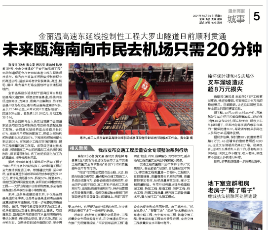 金丽温东延线控制性工程大罗山隧道顺利贯通
