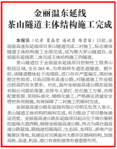 金丽温东延线茶山隧道主体结构施工完成
