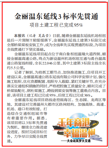金丽温东延线3标率先贯通