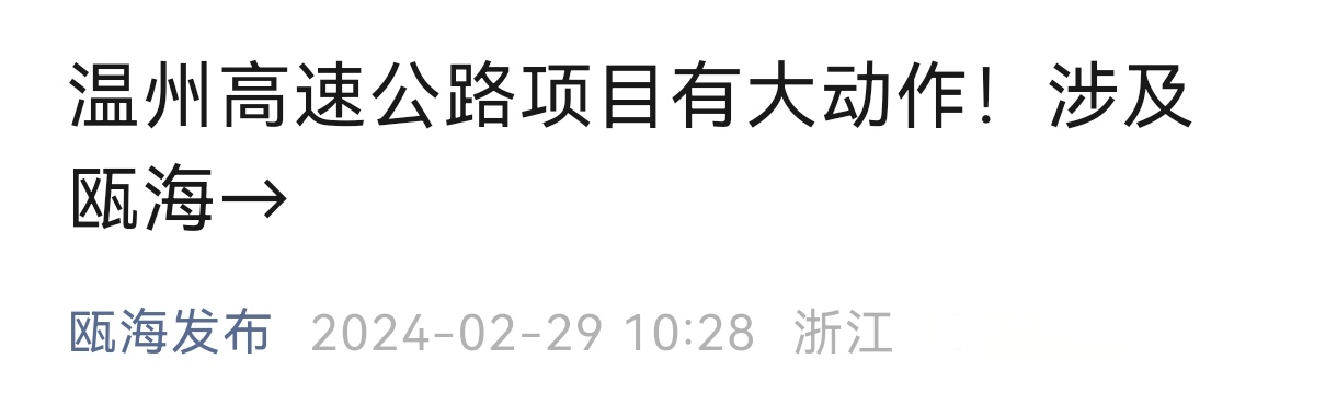 温州高速公路项目有大动作!涉及瓯海→