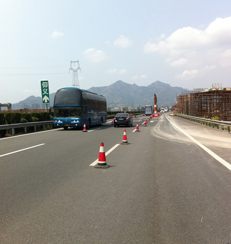 为保障跨线施工借道路段的安全畅通,工程公司积极落实相关安全工作措施。一是要求施工单位进行专门的安全教育培训,使施工人员提高安全意识,做到“安全第一”,克服麻痹大意思想;二是在借道路段设置清障车和预警车,及时对各类突发情况进行应急处置;三是按要求设置道路封道标志标牌,在施工前方