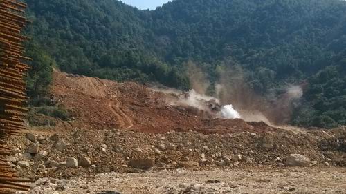 本项目第4标段路基挖方共有146万m³,本次深孔爆破钻孔孔径110mm,孔深6-16米,爆破使用90cm乳化炸药2040kg。首次深孔爆破的成功实施,为加快路基施工进度奠定了基础。