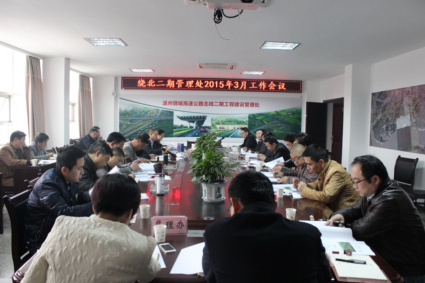 3月20日上午,绕北二期管理处在四楼会议室召开月度工作会议,会议由管理处副处长杨建群主持。沈海公司副总经理兼绕北二期管理处处长李革,乐清高速办陈新乐、管理处职能科室负责人及监理、施工单位主要人员参加会议。