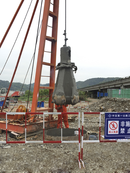 里岙大桥全长385.4 m,为分离式结构设计,上部结构采用先简支后连续20m预应力砼小箱梁,;下部结构为柱式墩台和钻孔灌注桩基础。全桥共设桩基84根,采用冲击钻孔施工。