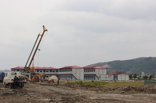 目前,梁板预制场已完成钢筋加工棚、生活区住房建设,轨道基础、制梁、存梁台座软基处理水泥搅拌桩已施工过半,计划将于7月初投入生产。