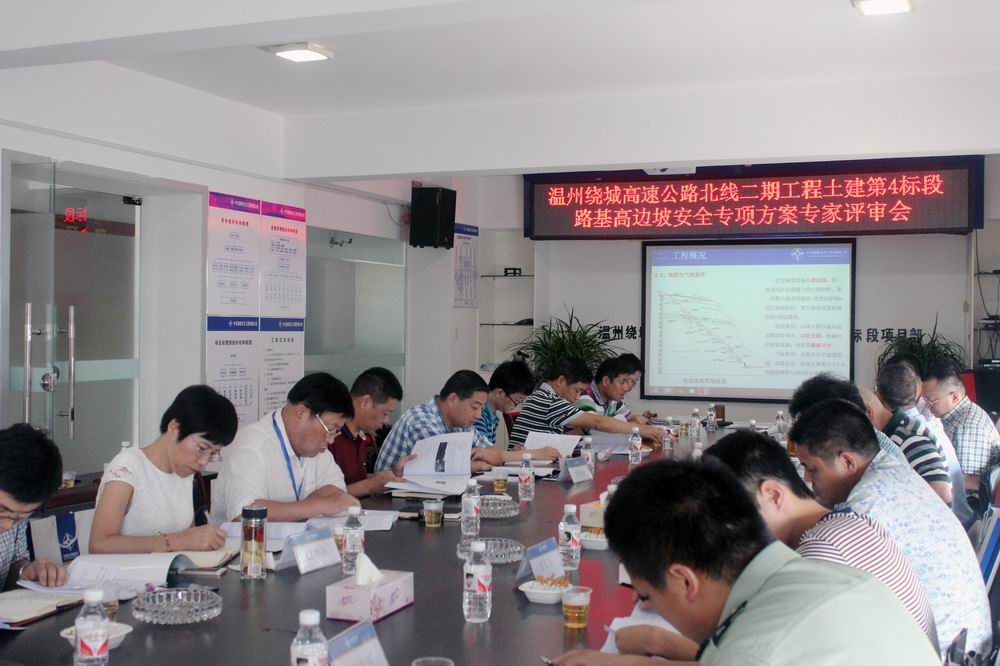 9月8日下午,温州绕城高速公路北线二期工程第4合同段路基高边坡安全专项施工方案评审会在四标项目部大会议室召开。温州市交通工程质量监督局、绕北处及监理、施工单位代表参加会议。会议成立了评审专家组。