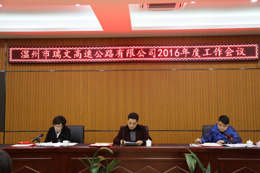 宋海良作了《勇敢拼搏、砥砺奋进,为打造温州西部山区“致富路、民生路、幸福路”而努力奋斗》的工作报告,对公司2015年度工作做了系统的回顾和总结。他指出,2015年是瑞文项目前期工作取得重大突破与成绩的一年,通过紧抓落实、创新工作思路,在投资建设、施工图报批、政策处理、招投标和融资工作等方面皆取得了较好的成绩,目前土地组件资料已报省国土厅审批。