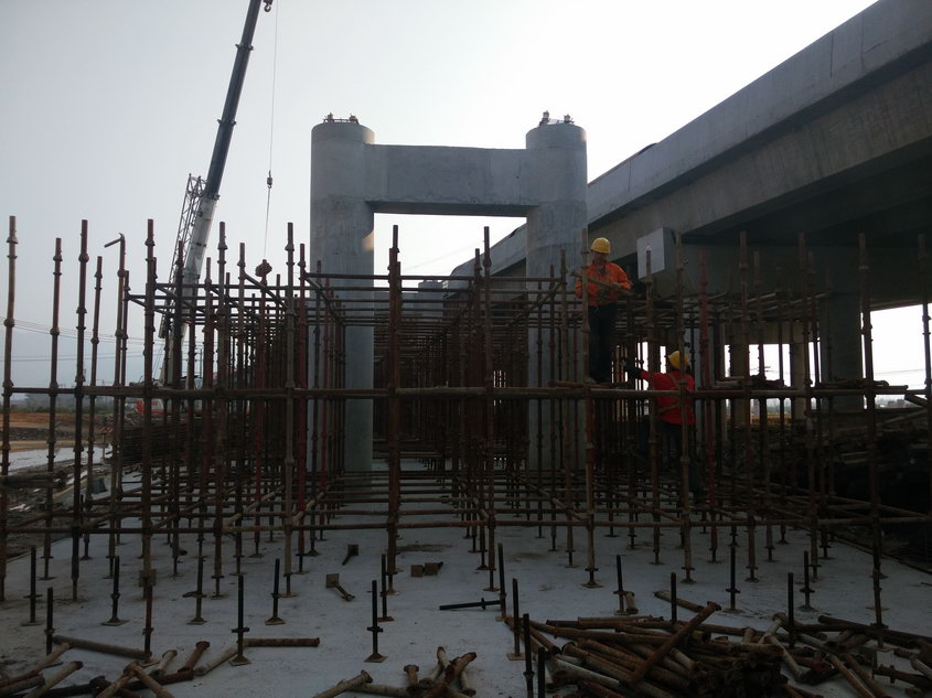 时至三月,绕西南工程全线也步入了全力建设阶段,近期,绕西南工程第7标段开始了现浇箱梁的施工。