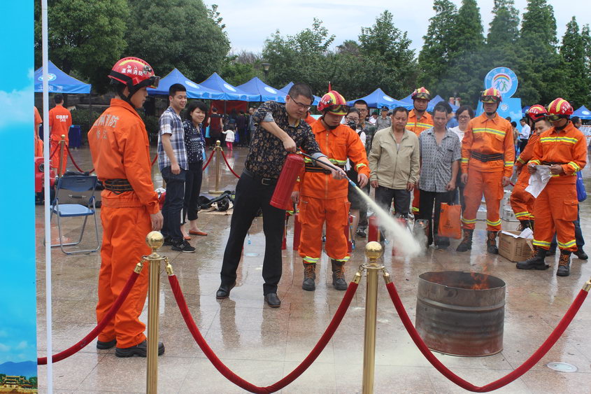 在龙湾区河泥荡公园广场,各参建单位现场零距离参观消防官兵、应急救援队的应急救援器材装备、多旋翼飞机、专用车辆展示,领取防灾减灾知识宣传资料,并积极参与各项有奖竞猜、观看影视宣传片、心肺复苏、油桶灭火等活动。
