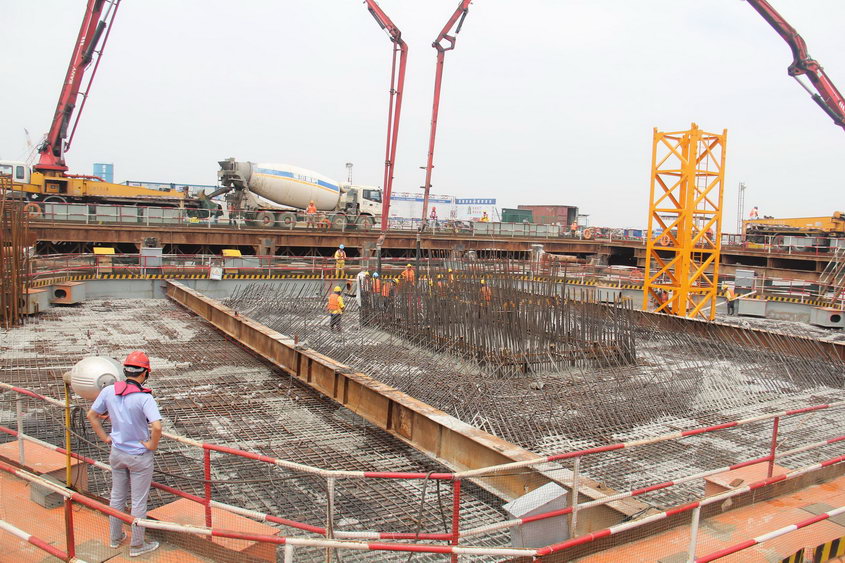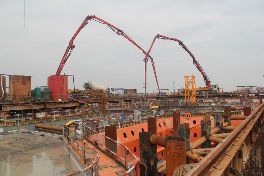 飞云江跨海特大桥南岸主墩承台顺利浇筑完成