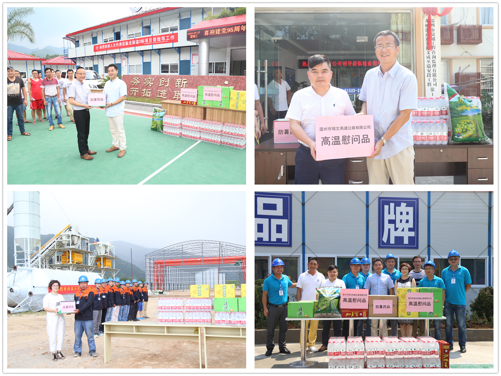 连日来,热浪滚滚,气温节节攀升,7月27日至28日,瑞文公司组织开展高温慰问活动,慰问抗战在工地一线的工程建设者们。公司总经理宋海良,副总经理覃毅宝、夏笑丽,合同管理部经理柯小环,工会副主席张一旦等慰问了瑞文项目全线六个施工单位和两个监理办,送去了降温物资和防暑药品,并表达了真挚的问候和关心。