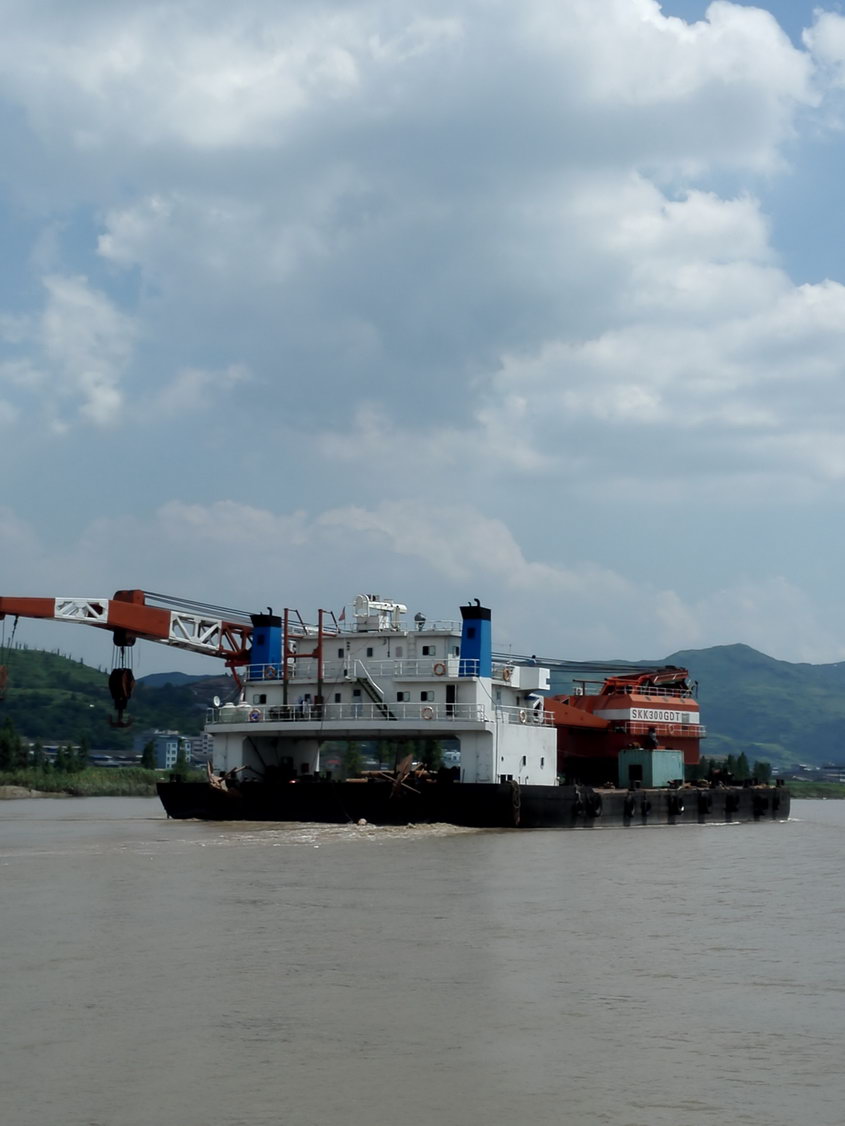8月5号下午,在领航船和护航艇的引导下,庞大的浮吊船终于顺利到达绕西南工程第7标段的飞云江系杆拱桥施工点。