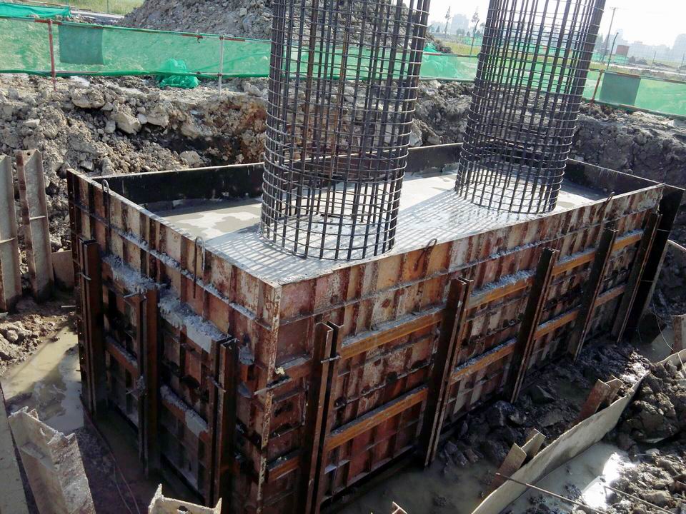 按照施工设计,9#承台长6.8米、宽2.6米、高2米,共需浇灌C30砼35.4M3,绑扎钢筋共计约6吨。为使首个承台能够在确保安全、质量的前提下顺利完成浇筑,项目部精心组织,合理配置。该工区主管、施工技术人员深入现场,精心组织技术骨干,对开挖破桩、清理基坑,绑扎钢筋,立模浇筑等相关施工工艺、作业流程、安全质量要求进行详细交底及工序安排。在各方的共同努力下,施工过程的每一个环节严要求、紧盯控,责任到人,严把施工质量关,确保承台内实外美。