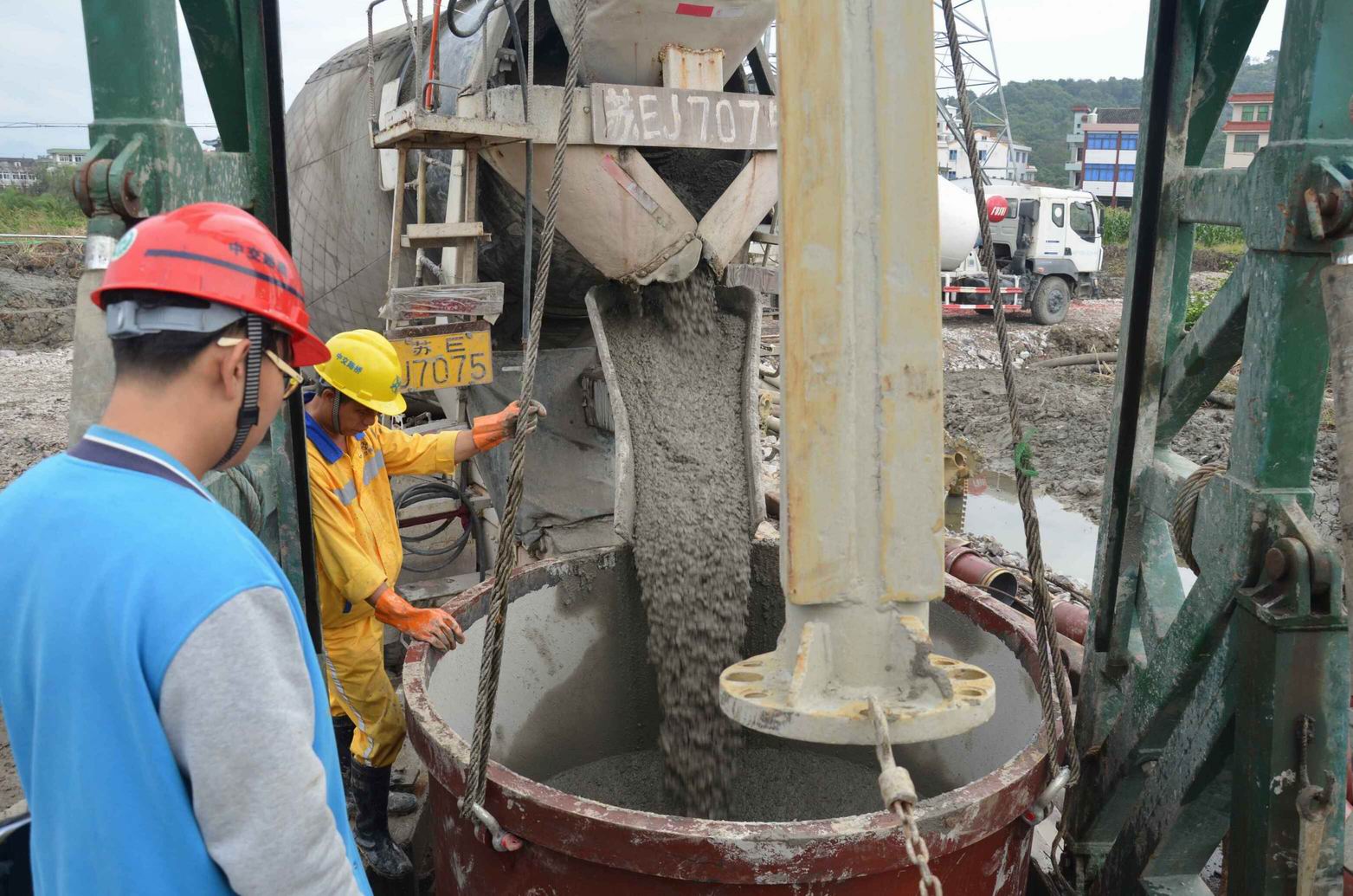 为保证首根桩基的顺利浇筑,浇筑前,技术人员对各项技术指标逐一测试,确保浇筑方案不出纰漏;浇筑过程中,技术人员全程现场指导,严格控制导管埋深、混凝土塌落度等技术参数,确保桩基质量达到规范要求;同时精确计算混凝土数量,减少混凝土超方造成的浪费。在项目部领导及施工人员的共同努力下,桩基灌注有条不紊,安全质量准确受控,排岩头高架桥首根桩基浇筑顺利完成。