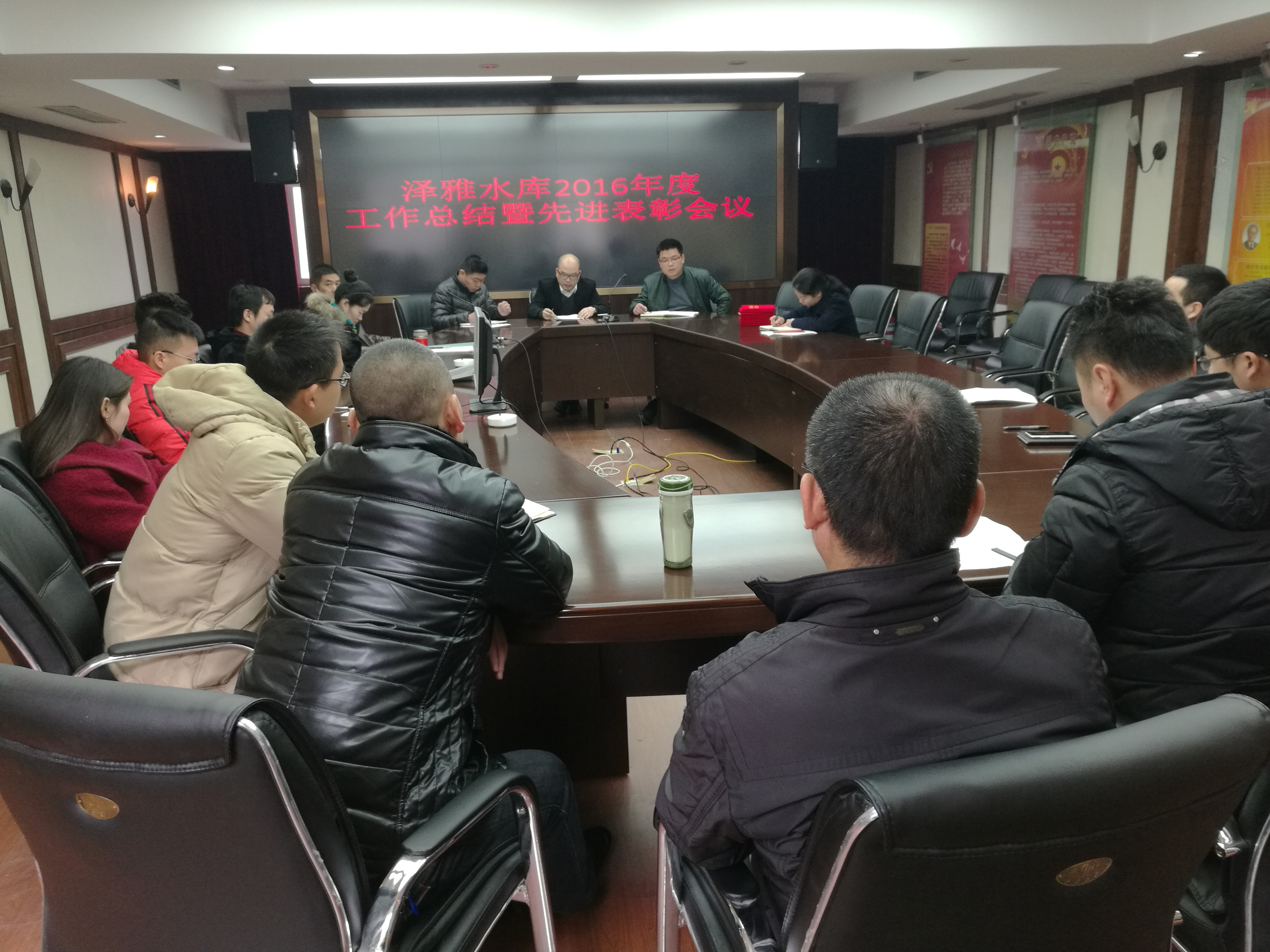 1月13日上午,泽雅水库在管理站三楼会议室召开2016年度工作总结暨表彰大会,管理站全体职工出席会议,会议由副站长麻青松主持。