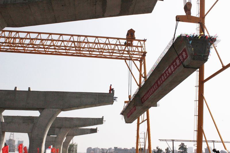 绕北二期工程成功架设首片预制箱梁