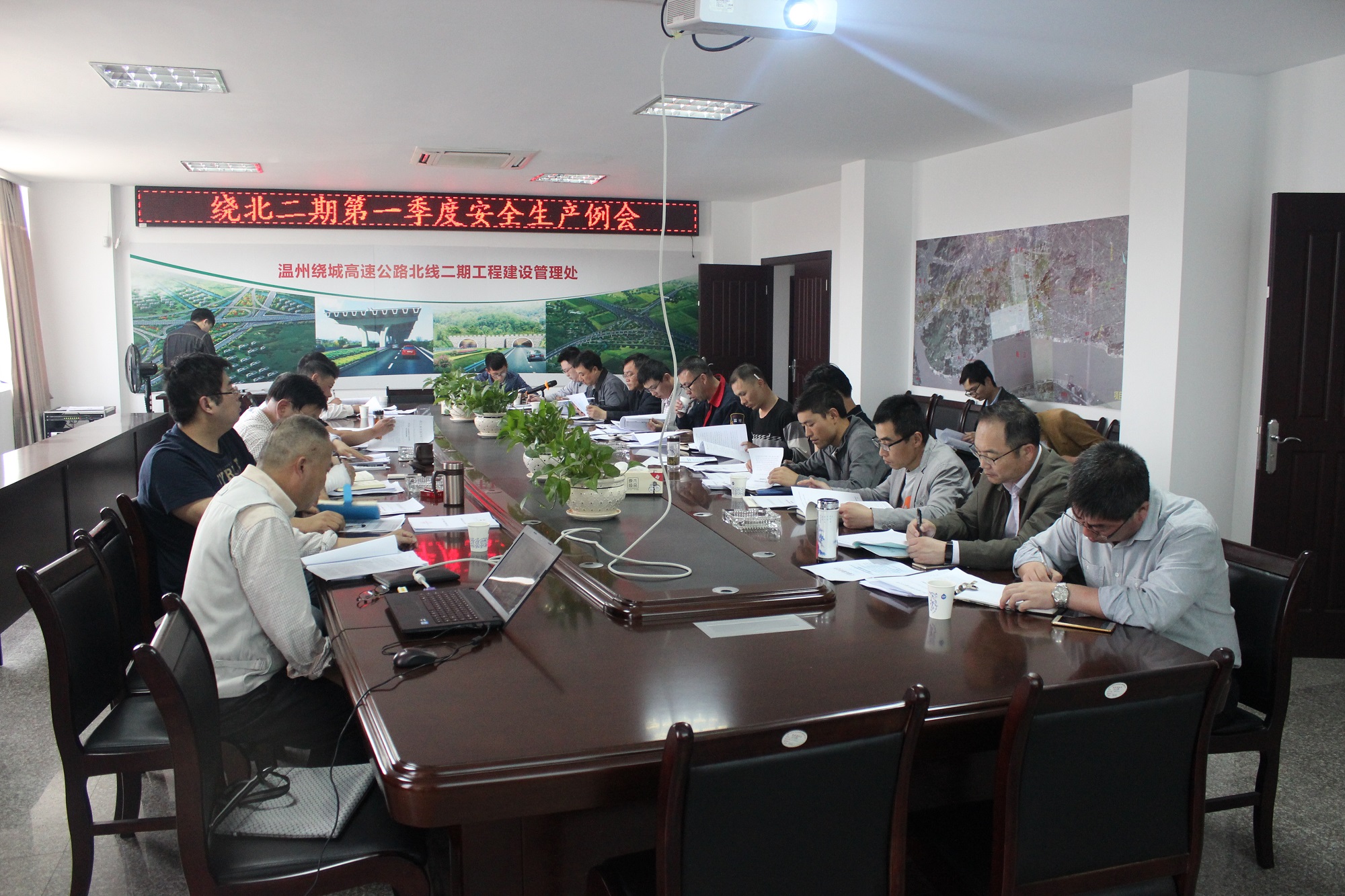 4月24日下午,绕北二期工程2017年第一季度安全生产工作会议在管理处四楼会议室召开,沈海公司副总经理、绕北处处长李革、管理处职能科室、施工单位、监理办等主要负责人共30余人参加会议,会议由绕北处副处长杨建群主持。