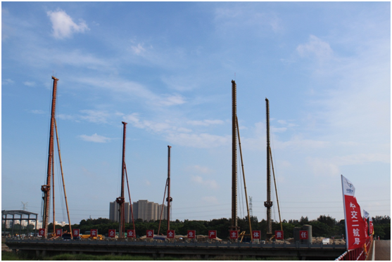 2017年是项目全面建设的开局之年,也是为工程全面建设打下坚实基础的一年,土建三标主要为南塔、南锚和南引桥的施工,工期紧张,任务艰巨。土建三标全体参建人员迎难而上,科学安排施工计划,精心组织施工工作,自5月18日首个砂桩施工开始,现场采用5台砂桩机日夜不间断同时施工,项目部技术、安全人员全程指导监督施工,施工期间更是克服五、六月强雨季和七月高温作业等施工困难,在规定日期内高效的完成了施工任务,大大推进了工程施工速度。