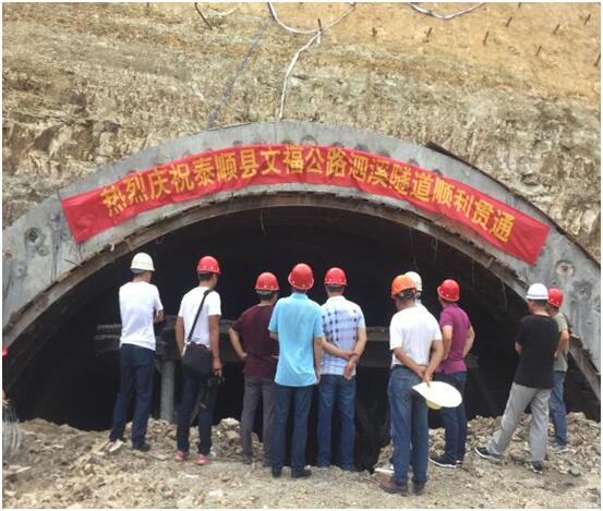 泰顺县文福公路改建工程泗溪隧道于2017年8月4日完成上台阶开挖,顺利贯通。