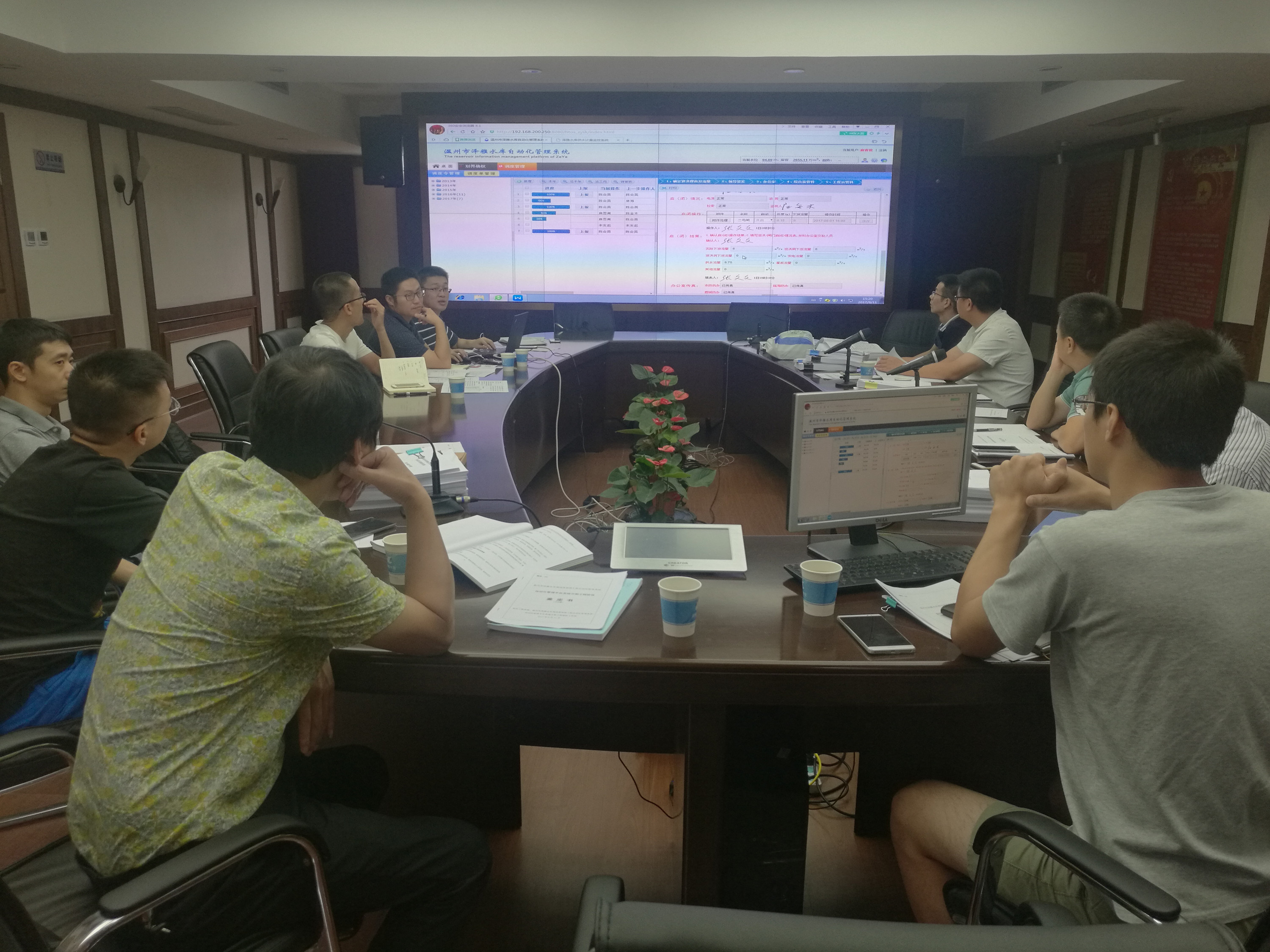 会议过程中,参建单位一边听取工程情况汇报,一边结合系统实际使用情况,对系统验收鉴定书中不合理的地方提出了修改意见。最后,验收工作组一致同意泽雅水库程自动化管理平台系统分部工程通过验收。