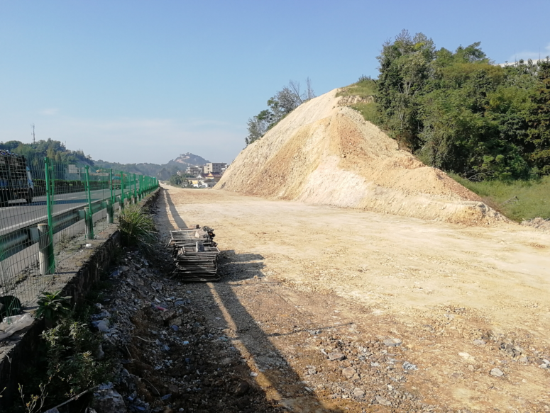 蒲岐互通E匝道挖方(EK0+230-EK0+293.912)与蒲岐互通主线右侧挖方(MLK31+768.403-MLK31+830)相接,总开挖方量1.1万方。E匝道与蒲岐主线右侧挖方的完成,为E匝道的路基施工提供了有利的条件。