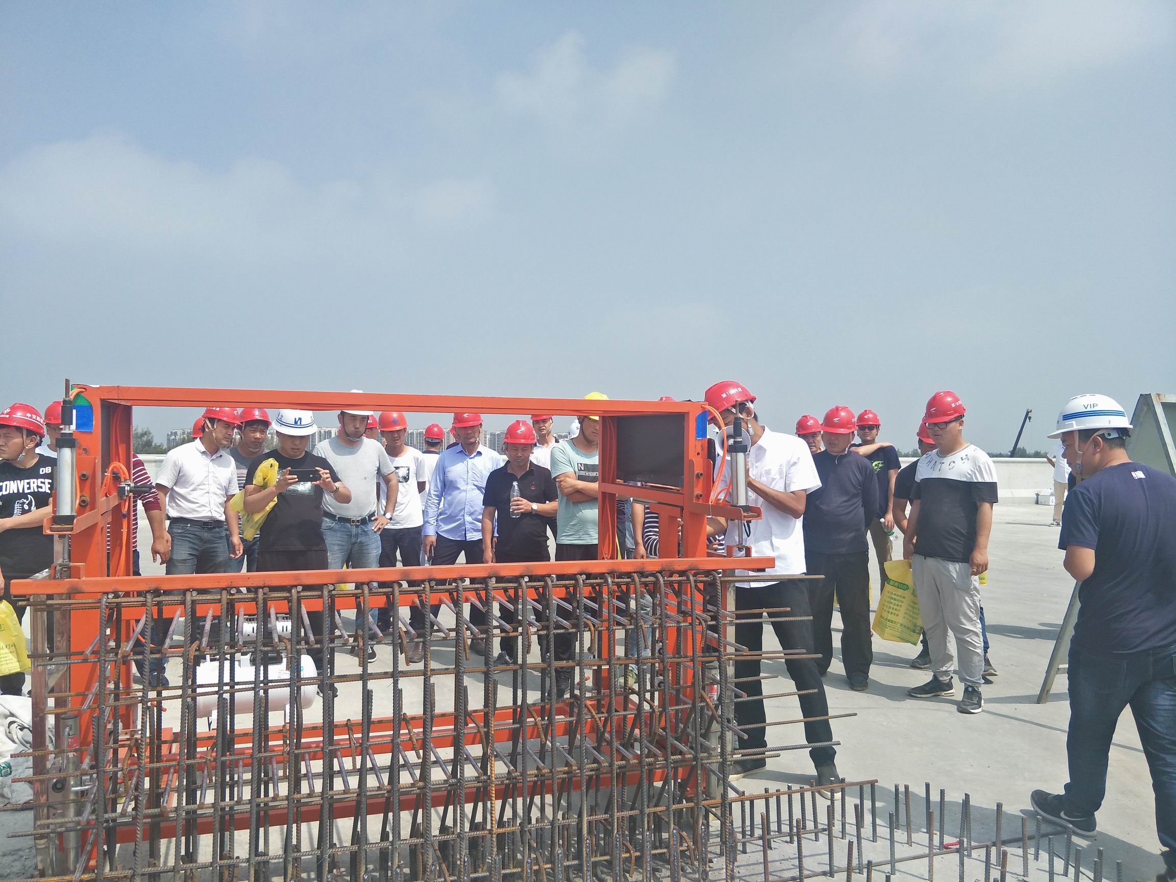 在观摩交流活动现场,甬台温复线灵昆至阁巷段工程1标项目部负责人就护栏钢筋安装一体机、护栏自动喷淋养护台车、可移动模板安拆操作平台、护栏浇筑施工平台、护栏修饰平台的制作和使用做了详细的经验介绍。观摩人员对各环节进行了深入观摩,并就防撞护栏施工管理经验进行了探讨研究。