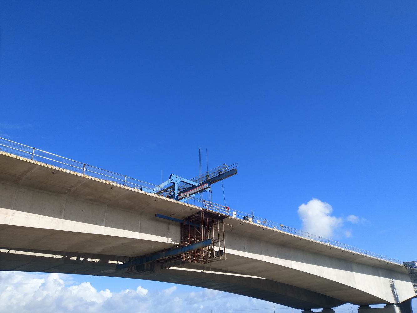 为了按时保质保量完成施工任务,沈海公司技术管理人员与工人一起奋战在施工一线,充分做好前期准备工作,严格控制中间过程,确保每个工序施工过程和结果符合规范要求。机料科和实验室人员严格做好材料进场验收;技术员全程旁站监管和指导挂篮前移、模板调整打磨、钢筋绑扎、砼浇筑等施工;项目技术人员亲自操作设备完成预应力张拉等关键工序。通过沈海公司的努力,瓯江口跨海南大桥右幅比预定计划提前半个月实现全线贯通。