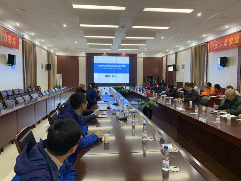 2018年10月16日,浙江省质量技术监督局发布了《公路桥梁后张法预应力施工技术规范》,作为公路桥梁后张法施工重要的指导性文件,并要求于2018年11月16日起实施。高工顾森华作为规范的主要编写人员之一,对于规范适用范围、施工过程质量控制、质量检验等全工程有着深刻的理解。宣贯会上,顾森华以详实的资料以及丰富的工程经验,深入浅出地对规范进行了解读,各参建单位表示受益匪浅。随后,各参建单位就部分规范条款的要求及施工中存在的质量提升的可行性等内容进行了充分的交流,并达成了一致意见。