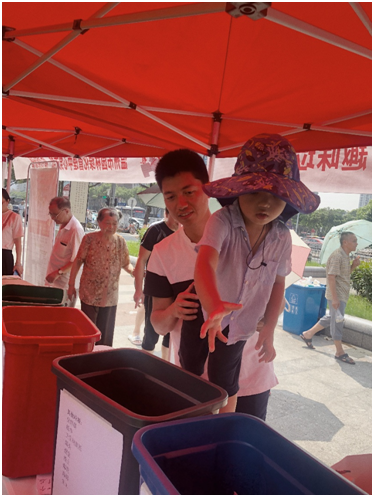 顶着烈日高温,全体志愿者在海坦广场开展“红七月服务月”环保主题活动,号召广大市民通过捐赠旧书的方式换取绿色植物,所有旧书将统一捐赠给温州BRT车站的流动书架。同时志愿者在现场布设摊位,为市民提供手绘环保手袋、空瓶DIY制作、垃圾分类投球游戏等,活动形式多样,内容丰富,并鼓励亲子协作上阵,获得了良好的社会反响。