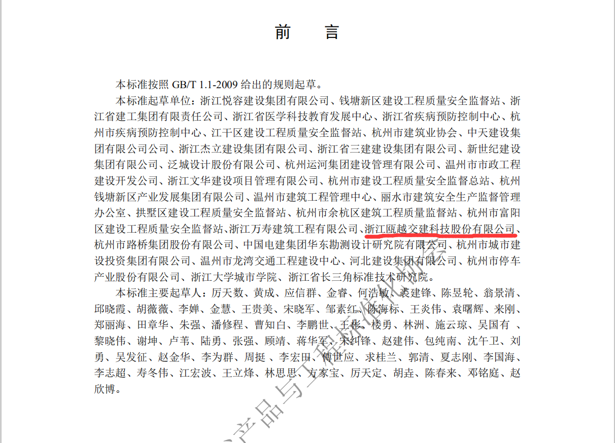 瓯越交建公司参与起草的《突发重大疫情防控期间建设工程施工现场管理规范》发布实施