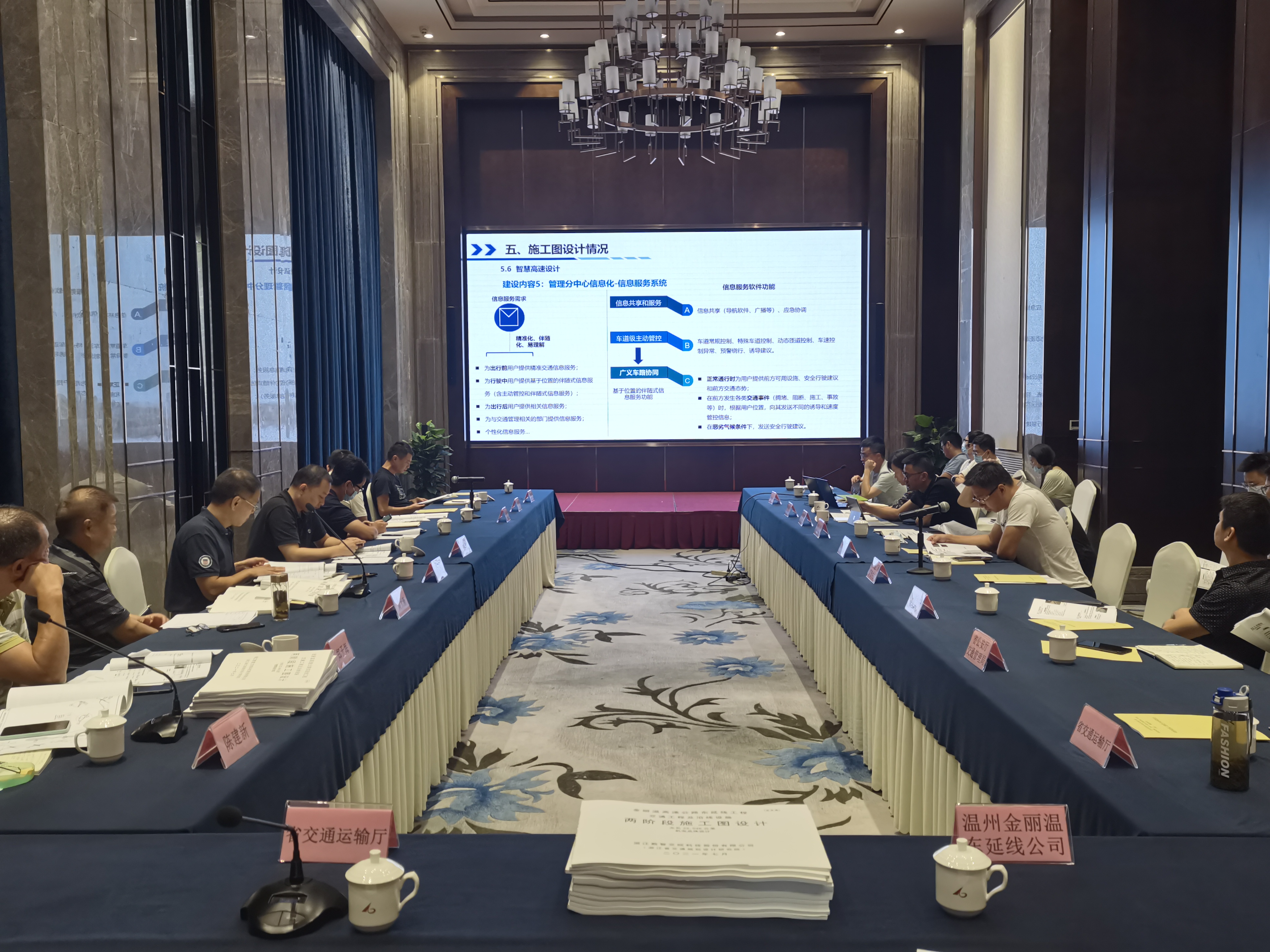 8月20日,金丽温高速公路东延线项目交安设施、机电工程施工图设计审查会顺利通过,机电工程是智慧高速的重要组成部分,会议围绕“智慧高速”进行了深入讨论并提出建设性建议,为下一步智慧高速建设实施夯实基础。省交通厅、省公安厅交管局、省公路与运输管理中心、省交通工程管理中心、市交通局、高速交警温州支队、市交发集团等单位及特邀专家参加会议。