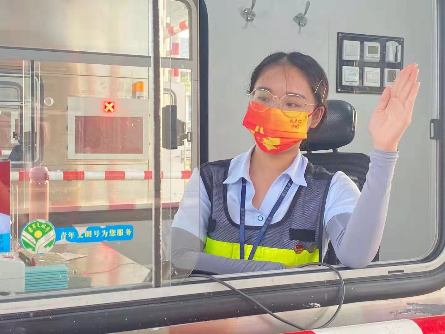 10月1日,运营公司各收费站票亭内均插挂国旗、党旗,收费员佩戴“中国红”口罩,用三尺岗亭内洋溢的那一抹“中国红”,迎接南来北往的每一位司乘朋友,打造美观、靓丽的红色风景线。