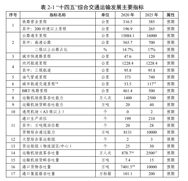 根据《规划》,到2025年,温州基本建成“畅达国内国际、引领区域协同、统筹开放融合、更加绿色智能”的全国性综合交通枢纽;完成综合交通投资2200亿元,新增综合交通网总规模2000公里,较高水平建成3个“1小时交通圈”,基本形成“521”高铁时空圈,港口集装箱吞吐量突破200万标箱,机场旅客吞吐量力争2500人次;中心城区“两主三辅“综合客运枢纽格局基本形成,综合客运枢纽平均换乘时间8分钟,实现5万人以上乡镇15分钟上高速,基本实现万人以上乡镇通二级路(含二级以上);快递量突破22亿件,邮政行业业务总量达到160亿元;全市综合交通产业增加值超1000亿元,3A以上物流企业突破100家。