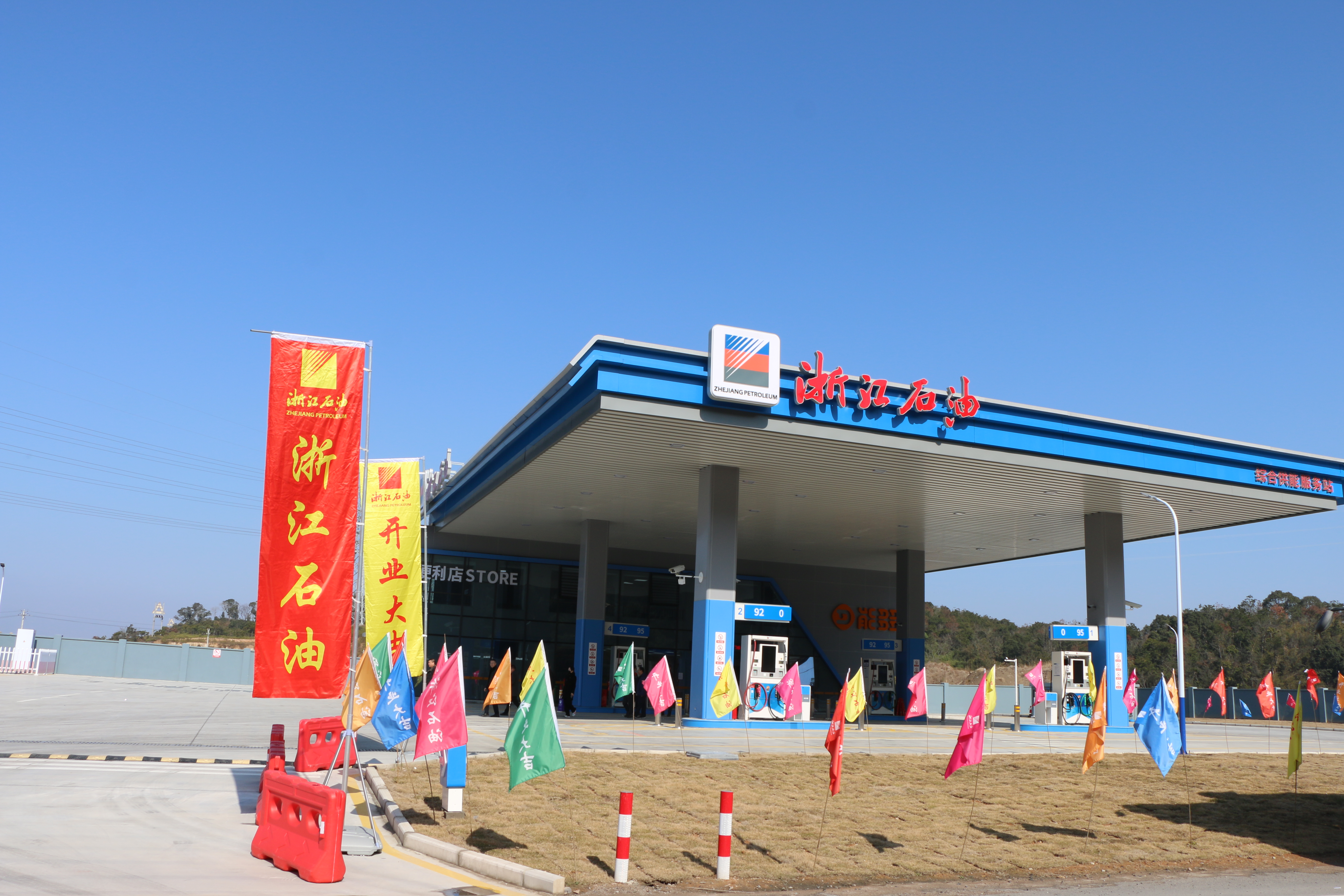 作为2019省十大民生实事项目之一,综合供能服务站集电能、清洁油品等供给服务功能为一体,具有功能综合、土地集约、清洁环保等优势,是一种供能服务新业态、新模式。洞头小门综合供能服务站由浙江浙石油综合能源销售有限公司和温州大小门岛投资开发有限公司共同投资建设。项目位于洞头区大门镇小门石化产业基地A-01C地块,于2020年8月开工建设,2021年12月投入试运行,总投资约8300万元,占地面积约7亩,设有30立方米埋地卧式柴油储罐1只,30立方米埋地卧式汽油储罐3只,安装税控潜泵式四枪双油品加油机4台16支加油枪,油品种类有0#柴油、92#、95#汽油,120kW直流分体式一机双桩充电机1套,属于二级综合供能服务站。