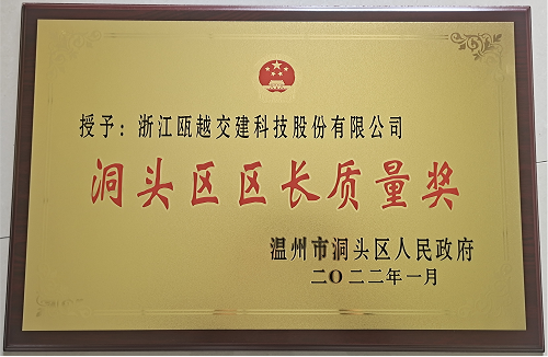 2月11日下午,“洞头区区长质量奖”颁奖仪式隆重举行,浙江瓯越交建科技股份有限公司凭借在产品质量、服务、社会影响力等方面的卓越表现,斩获此项荣誉。