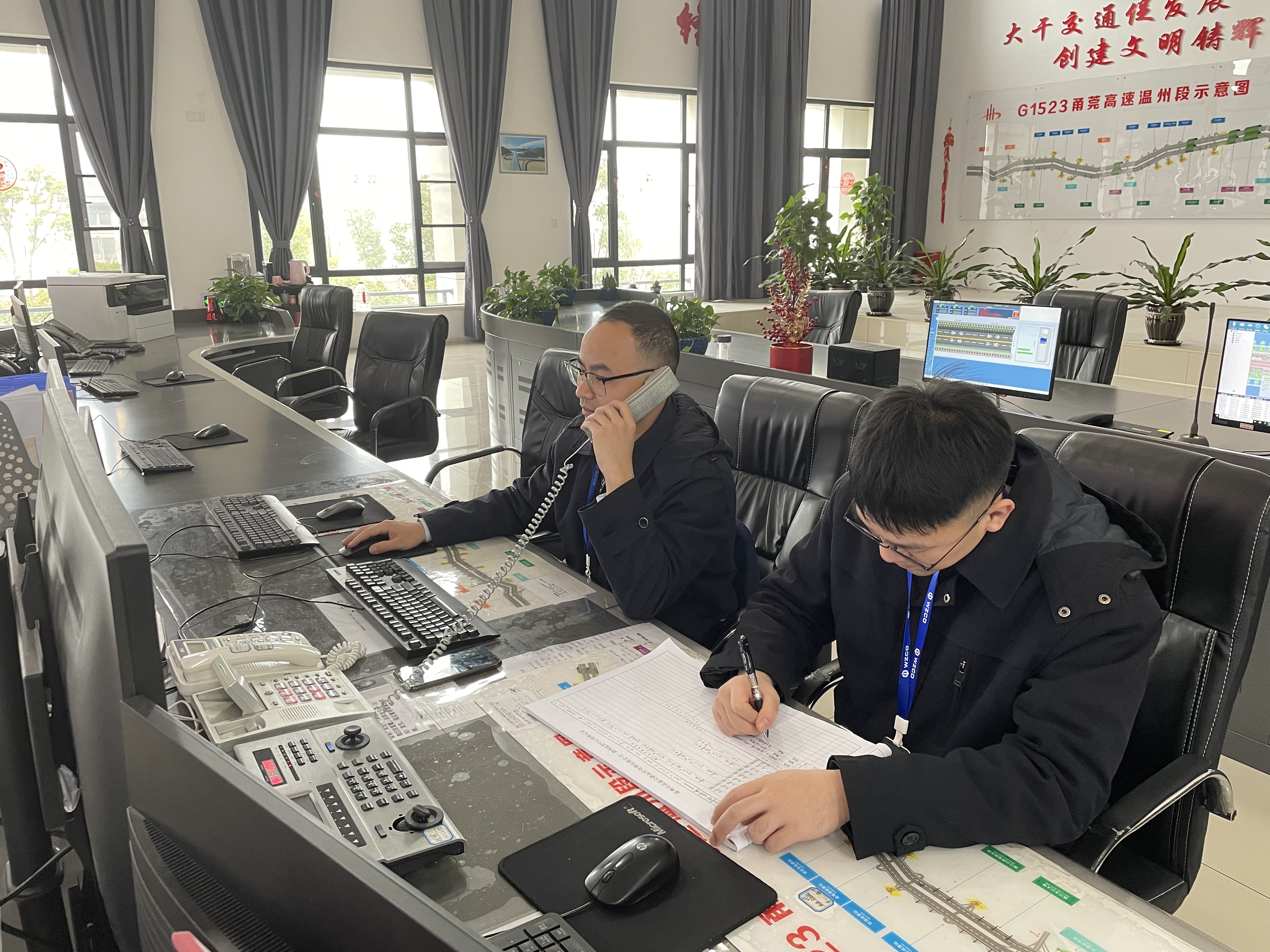 “您好,师傅,请问您的车是否因故障停留在绕城K3+500处,我们有什么可以帮您的?”“您好,请问您的车停在哪个位置,好的,我们看到您的车了,请您在车后方150米处放置三角锥,人员请勿坐在车内,撤离到安全位置,等待救援。”……监控大厅内电话铃声此起彼伏,当人们合家团聚之时,身为路网监控员的他们,还在灯火通明的监控中心里,合着眼花缭乱的监控画面忙的不可开交。请相信,每一通电话,每一条信息,都是监控员们对您的“守护”。