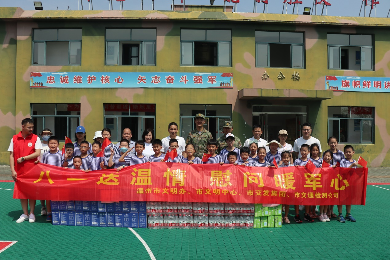 为贯彻落实习近平总书记关于家庭、家教和家风的论述,进一步涵养家国情怀,弘扬家庭文明新风尚,8月1日,市文明办、市文明中心、市交发集团联合文明联盟各成员单位到驻温某部队举办“涵养家国情怀 共建文明家庭”庆“八一”活动。活动由温州交通检测公司承办,“文明联盟”共建单位及交发集团系统各单位职工适龄儿童共40余人参加。