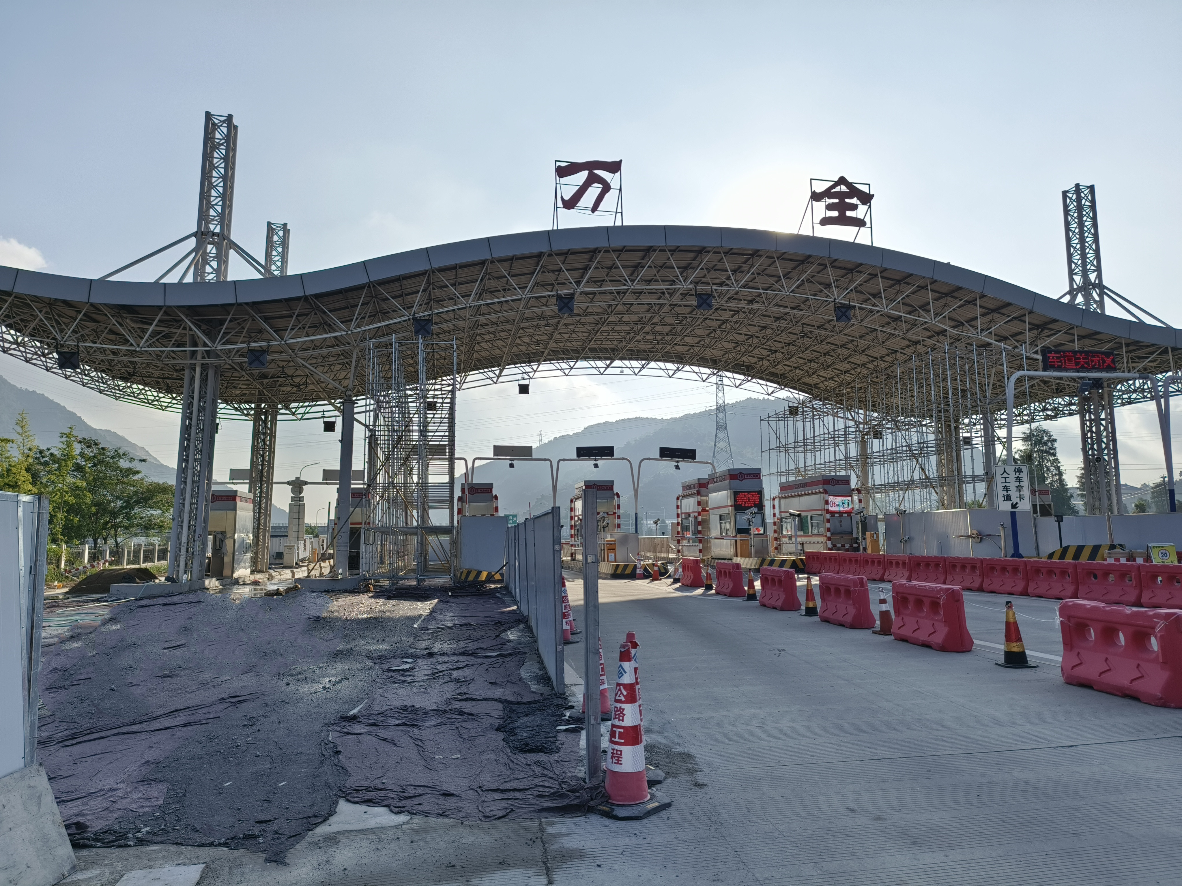 全力推进万全收费站大棚加固工程,通过临时支撑设置,基础加固改造、加强保通保障等措施,顺利实现“边施工边保通”要求,切实解决万全收费站因地质沉降引起的收费棚立柱变形安全隐患,提升安全防护等级。