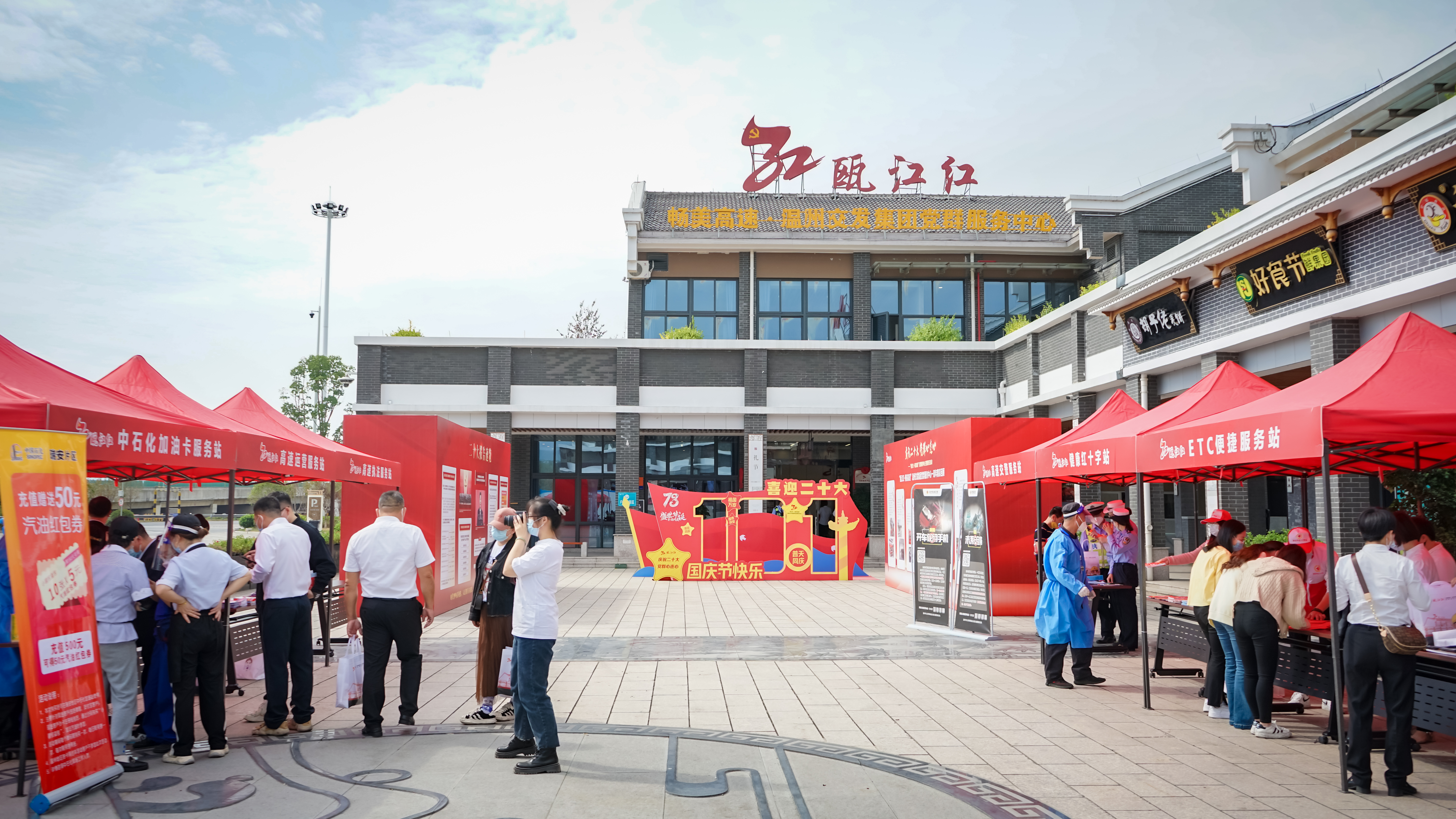 为祝贺党的二十大胜利召开,10月27日上午,在“瓯江红·畅美高速”党群服务中心成立一周年之际,党群服务中心联合14家党建联盟单位,开展“瓯江红·畅美高速”党群服务中心主题服务日活动。