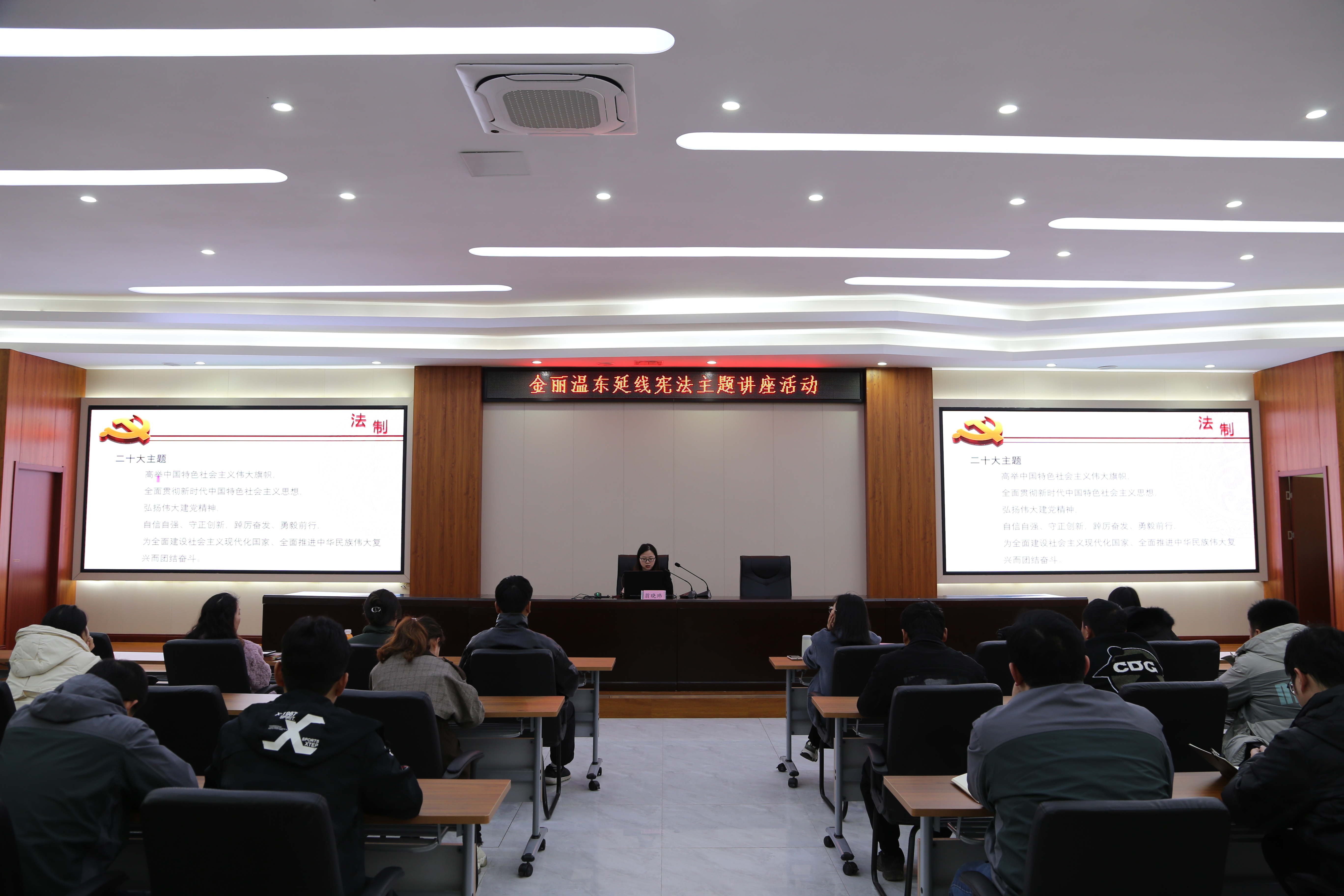 为深入学习党的二十大精神,全面践行习近平法治思想,推动全面贯彻实施宪法,做好普法宣传,12月6日,金丽温东延线项目开展宪法主题讲座活动,活动邀请浙江泽商律师事务所翁晓玮律师授课,来自监理办及各施工单位的40余名一线建设者参加活动。