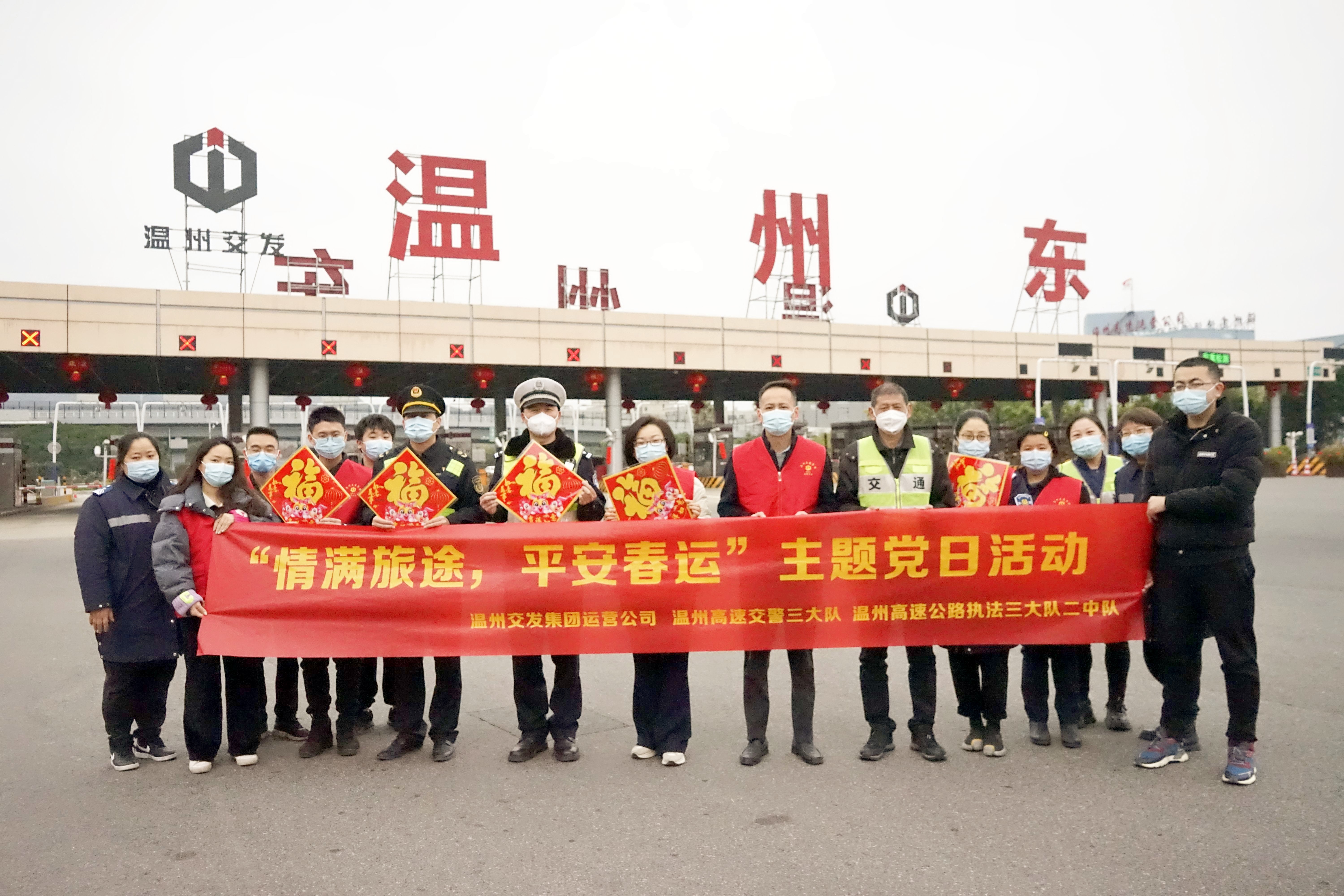 “师傅您好,出行注意安全,喝杯防疫茶暖暖身子吧。”1月17日上午,市交发集团运营公司联合市高速交警、市交通执法等党建共建单位在温州东等收费广场设置便民服务点,向过往司乘人员发放《春运安全出行倡议书》等宣传材料,免费提供简易修车工具、应急药品、防疫汤药、中国结、“福”字贴等便民物资,提供暖心服务,营造平安祥和的节日氛围。