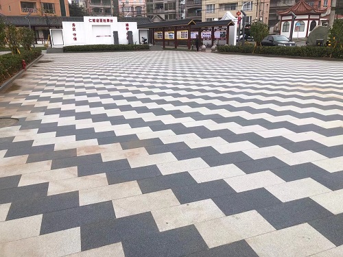 公司党员队伍在建设过程中合理布局和规划设计,广场内设篮球场、停车场、文化墙、绿色步道、凉亭等休闲区域,每一块区域都采用不同类型的路面砖铺装,通过各类砖型组合和不同颜色巧妙搭配夯实路面。绿色休闲步道采用了芝麻黑仿石路面砖,内嵌呈菱形排列式的砖红色仿石路面砖,气派而倩丽;篮球场两侧采用了大板系列砖,视觉上空间达到更大程度的扩展,平整度和硬度更强,能够满足民众开展休闲文化活动的需求;停车场设计将植草砖与联锁块糅合在一起,更凸显物理性能和生态效果。总的来说,用不同系列的路面砖产品给公共空间功能划分区域,体现产品的精细化、差异化,是发挥瓯越交建产品优势的最好体现,更勾勒出乡村核心的空间形态。