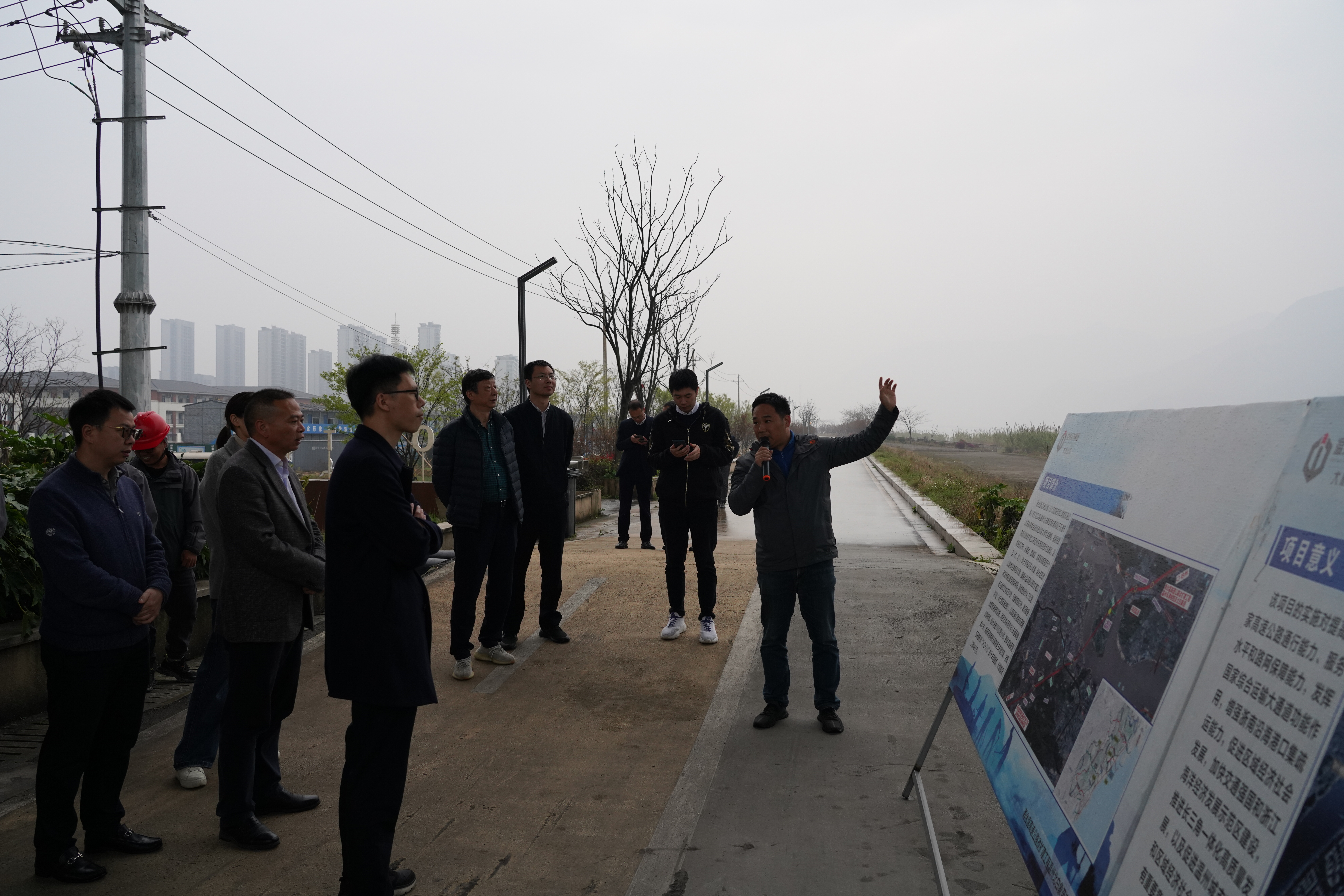张坚一行深入施工一线,实地查看了甬台温改扩建工程北白象至南白象段温州大桥栈桥工程建设情况,认真听取了项目概况、栈桥工程进展、前期报批工作及下步计划等方面的汇报,对项目前期工作及栈桥工程建设情况表示肯定。